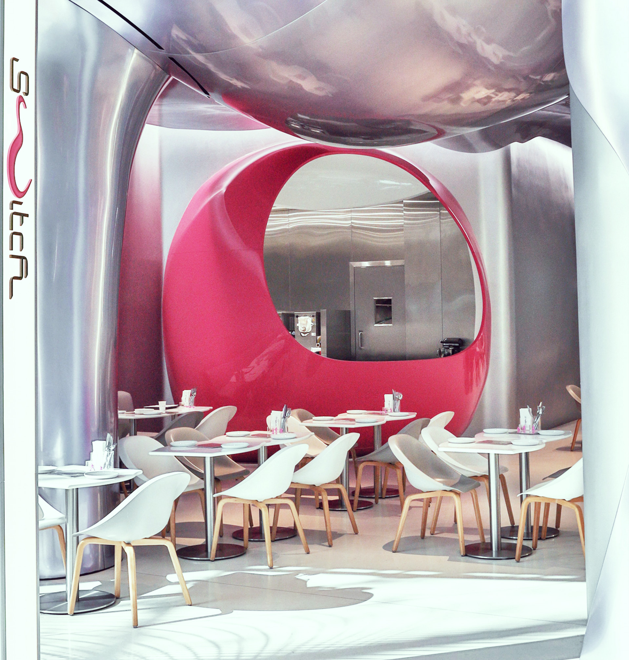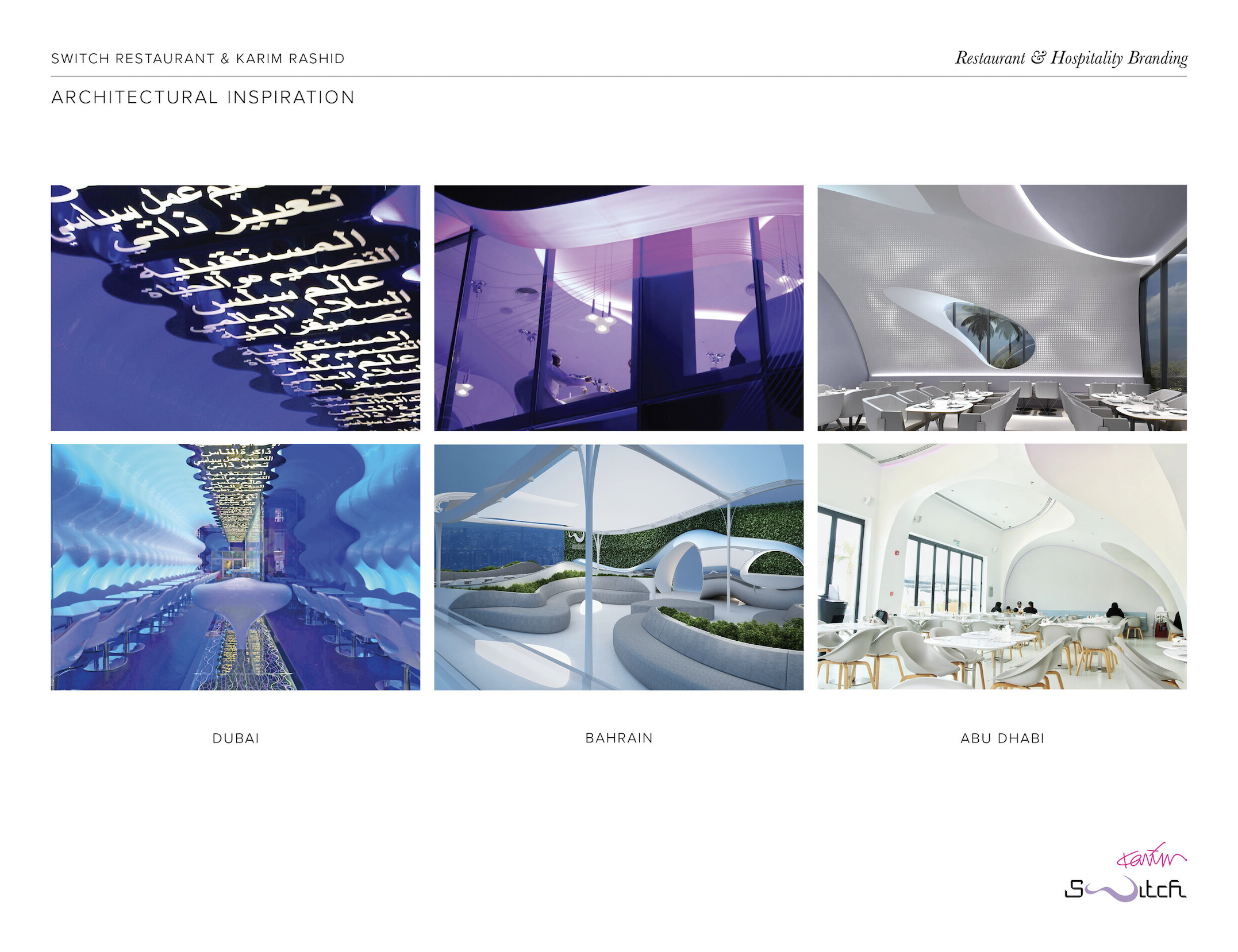 Switch Restaurants, an established hospitality group in the UAE, sought to bring a next-generation dining experience to its new locations. With a vision that blended futurism and local cultural identity, the Karim Rashid Studio was tapped to craft a bold, modern aesthetic for the brand. As part of the New York–based team, Rachel contributed to the brand's visual evolution during her time at the Karim Rashid Studio.