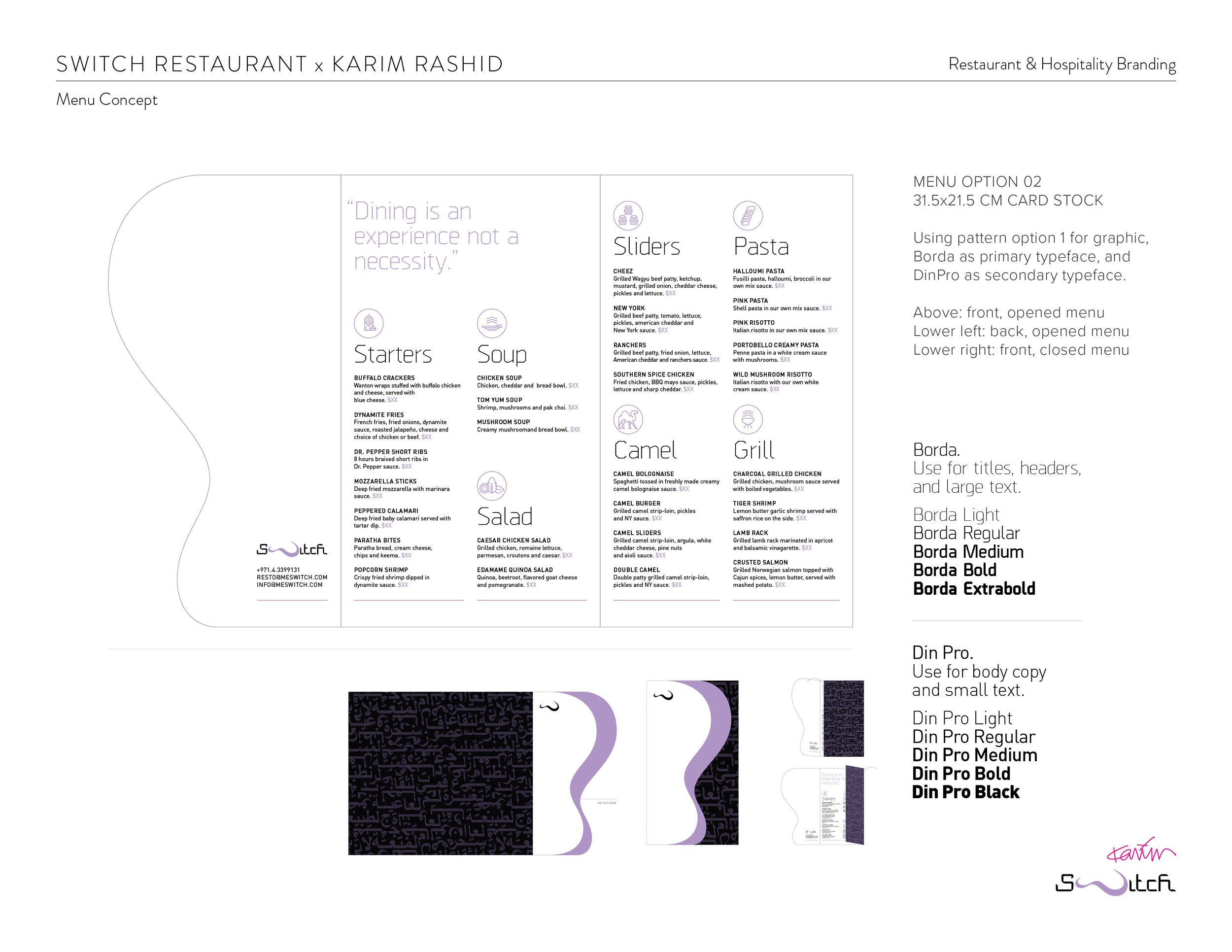 Rachel supported the development of a comprehensive brand identity system that merged the restaurant’s ultra-modern sensibilities with subtle Arabic design influences. Her contributions included:
